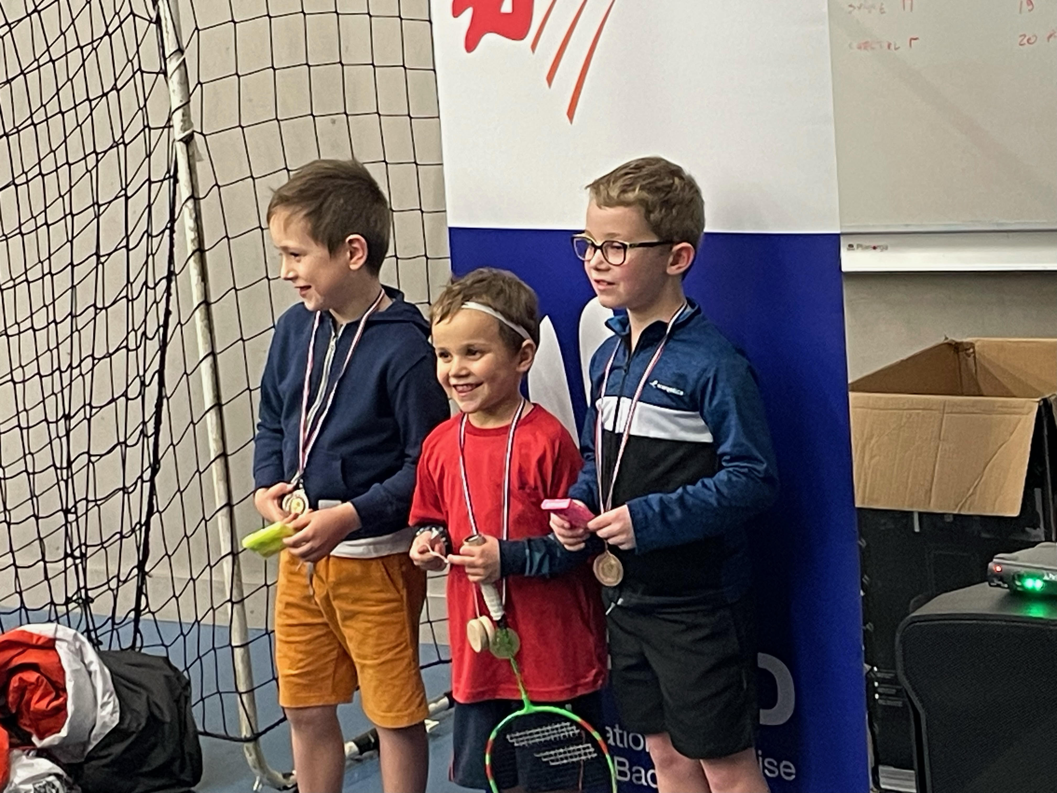 Liam en mini-bad pour sa première compétition à donner tout ce qu’il avait mais n’a pu gagner aucun de ses 2 matchs, mais là n’est pas le principal car notre jeune a pris plaisir, veux retourner en compétition et c’est ce qu’il faut retenir.