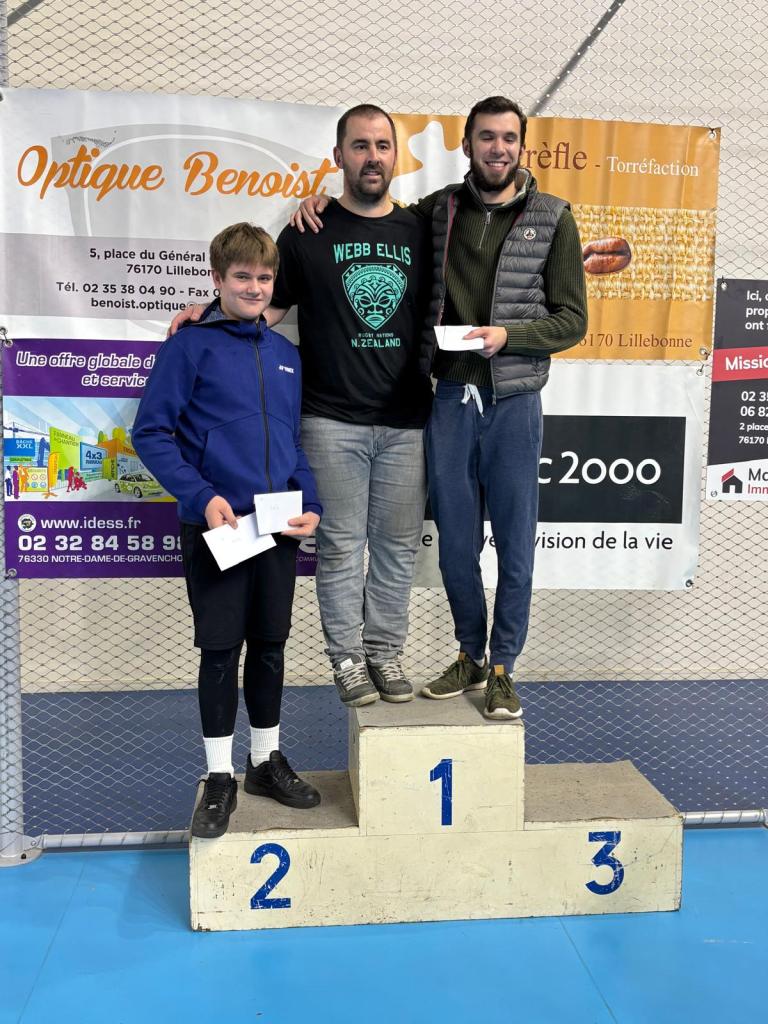 En double-hommes, Dorian/Antony perdent en quart de finale, Pierre et Eric sâarrĂȘtent dĂšs le premiĂšre match sur une blessure dâEric (tous nos voeux de rĂ©tablissement). Gabin et son partenaire perdent en finale sur un score serrĂ© de 21/11 – 11/21 – 14/21, ils montent sur la 2Ăšme marche du podium ! đ„