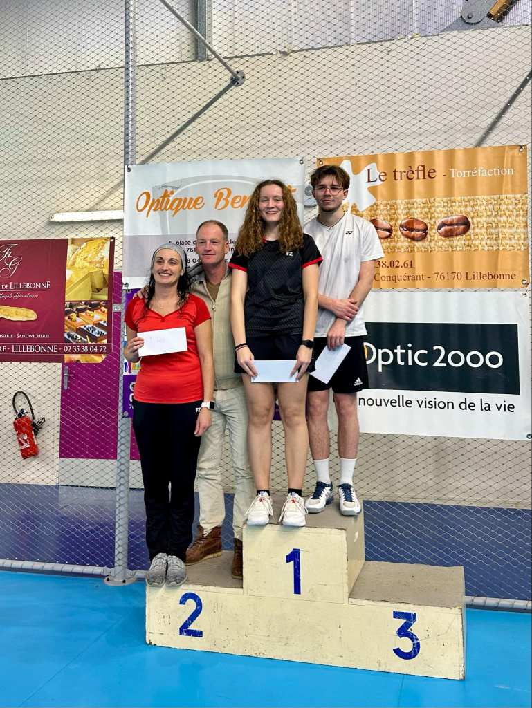 En mixtes, Romain/Carine ne sortent pas de poule, les paires Lola/Eric, ChlĂ©a/Hugo, Marie/GaĂ«l, EloĂŻse/Antony et Emeline/StĂ©phane perdent en quart de finale. La paire Liliane/Lorenzo perd en demi-finale. Câest la paire Giovanni/Emmanuelle perd en finale sur un score de 21/16 – 14/21- 18/21, elle monte sur la 2Ăšme marche du podium ! đ„