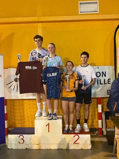 En mixtes U19 Junior Emeline est associée à Thomas Benard (USL), dans une poule unique de 5, la paire fait un sans-faute en remportant tous leurs matchs et en ne concédant aucun set ! Ils montent sur la 1ère marche du podium ! ![]()