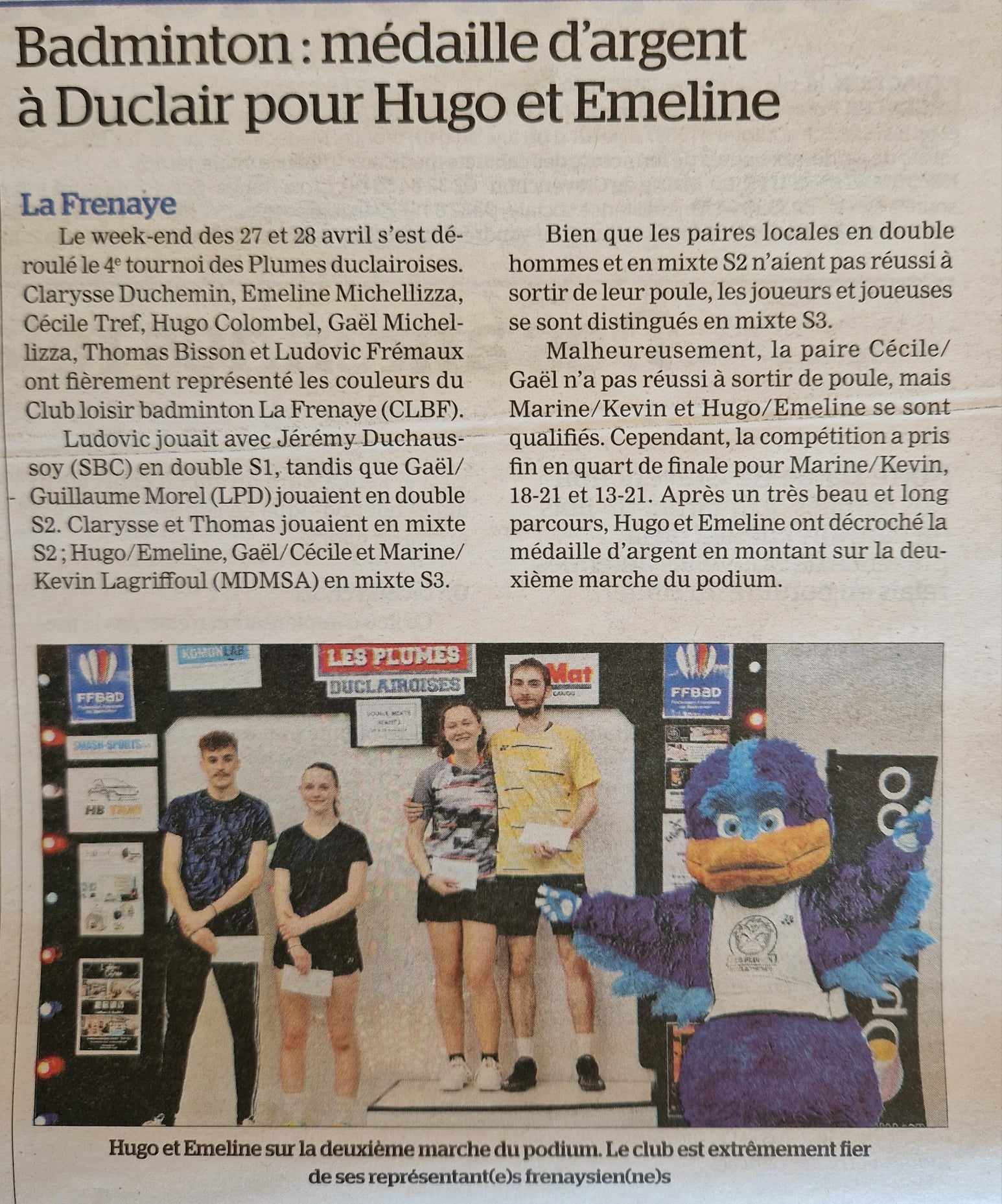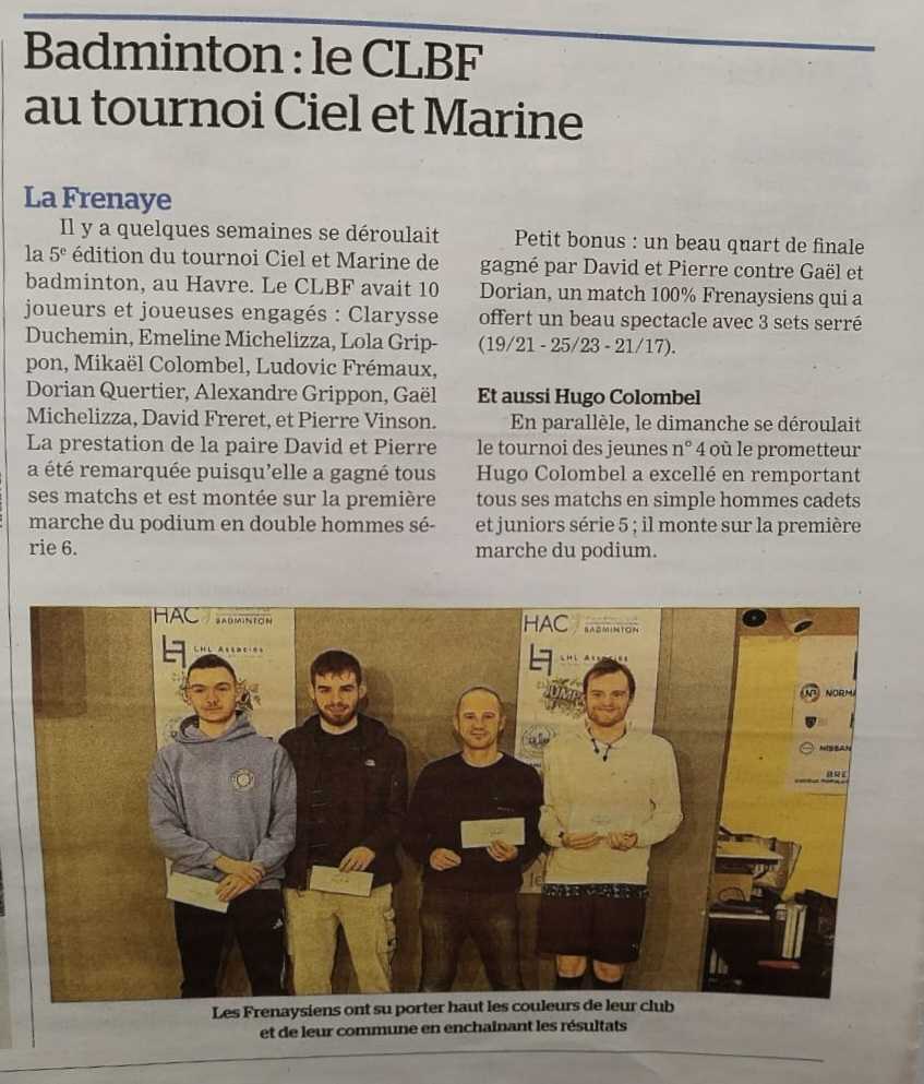 [Nos Frénaysiens excellent – article] 🗞