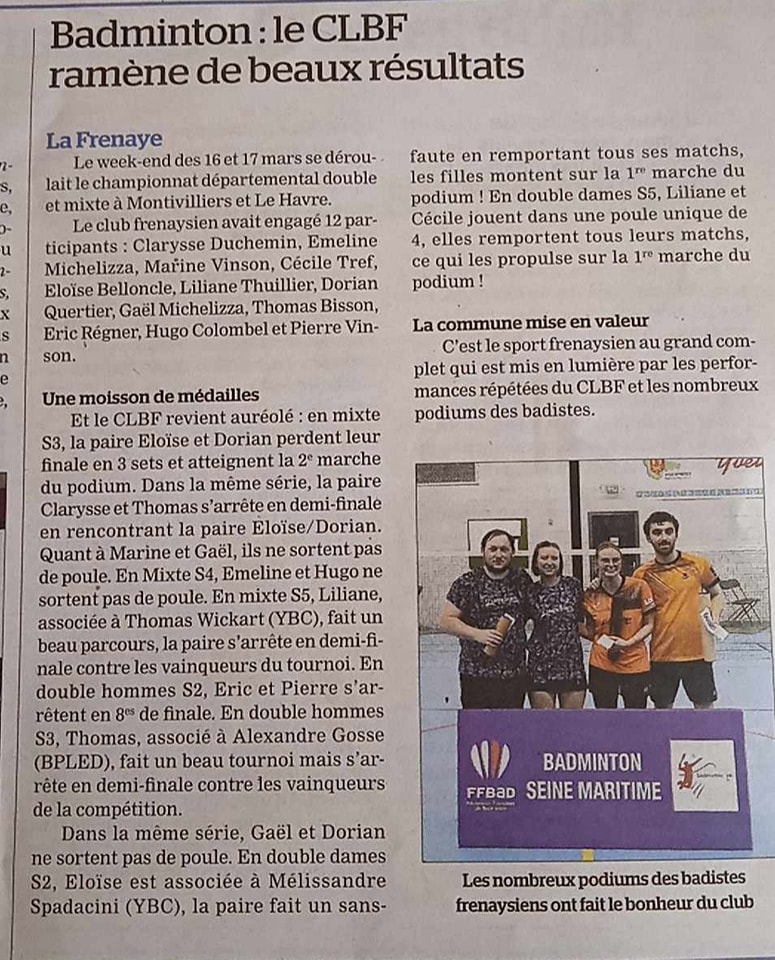 [Championnat départemental adultes doubles et mixtes – article du 29/03/2024] 🗞